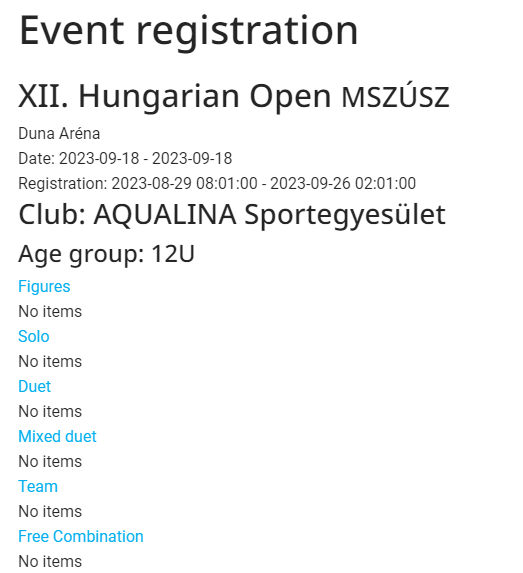 Az egyesület és a versenyzők adatainak beállításának leírását itt találja meg. - Versenyregisztráció indítása